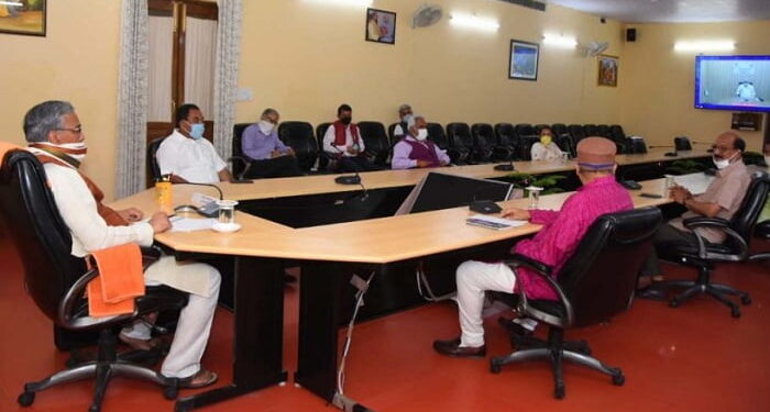 देहरादून। मुख्यमंत्री श्री त्रिवेंद्र सिंह रावत ने मंगलवार को मुख्यमंत्री आवास में अपने मंत्रिपरिषद् के साथ देश में लॉकडाउन से उत्पन्न परिस्थितियों पर चर्चा की। इस अवसर पर कैबिनेट मंत्री श्री मदन कौशिक, श्री सतपाल महाराज, डॉ हरक सिंह रावत, श्री सुबोध उनियाल, राज्य मंत्री डॉक्टर धन सिंह रावत एवं श्रीमती रेखा आर्या उपस्थित रहे। कैबिनेट मंत्री श्री यशपाल आर्य हल्द्वानी से वीडियो कॉन्फ्रेंसिंग के माध्यम से इसमें सम्मिलित हुए। राज्य की वर्तमान हालातों पर सभी मंत्रीगणों द्वारा अपने विचार एवं सुझाव रखे गए।