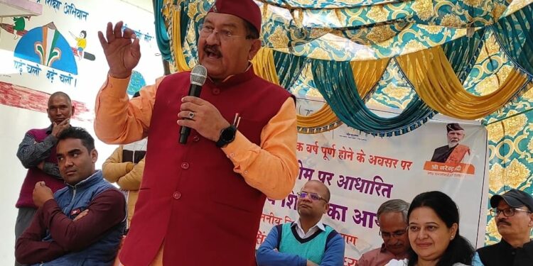 रुद्रप्रयाग – जनपद रुद्रप्रयाग के बछणस्यूँ काण्डई के बैरागणा जूनियर हाई स्कूल मे राज्य सरकार के एक वर्ष पूर्ण होने के अवसर पर क्षेत्रीय जनता की समस्याओं के त्वरित निराकरण एवं सरकार द्वारा संचालित जन कल्याणकारी योजनाओं का लाभ क्षेत्रीय जनता को उपलब्ध कराने के लिए एक साल नई मिसाल व जन सेवा थीम पर बहुउद्देशीय शिविर का आयोजन किया गया, मुख्य अतिथि रुद्रप्रयाग विधायक भरत सिंह चौधरी ने दीप प्रज्वलित कर कार्यक्रम का शुभारम्भ किया,जन सेवा बहुउद्देशीय शिविर में विभिन्न विभागों के माध्यम से पात्र लाभार्थियों को सरकार द्वारा संचालित योजनाओं के चैक वितरण कर लाभान्वित किया गया।