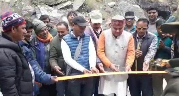 फोटो-मारवाडी-थैंग सडक पर मोटर पुल का उदघाटन करते विधायक महेन्द्र भटट।