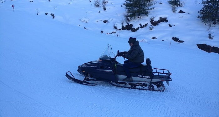 फोटो—हिमक्रीडा केन्द्र औली मे स्नो स्कूटर की ट्राइल लेते गृह राज्य मंत्री रिजजू।