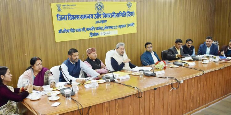 चमोली । सांसद एवं पूर्व मुख्यमंत्री तीरथ सिंह रावत ने बुधवार को जनपद चमोली में जिला विकास समन्वय एवं निगरानी समिति (दिशा) की बैठक लेते हुए केन्द्र पोषित योजनाओं की समीक्षा की। उन्होंने सभी जन प्रतिनिधियों एवं अधिकारियों को आपसी समन्वय बनाकर गुणवत्ता के साथ योजनाओं का बेहतर क्रियान्वयन करने पर जोर दिया।