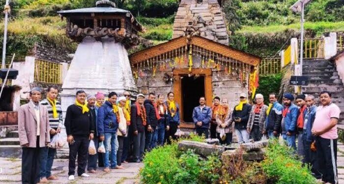 फोटो- नन्दा देवी सिद्धपीठ लाता में देवरा यात्रा बैठक में पहंुचे नीती घाटी के प्रतिनिधिगण।