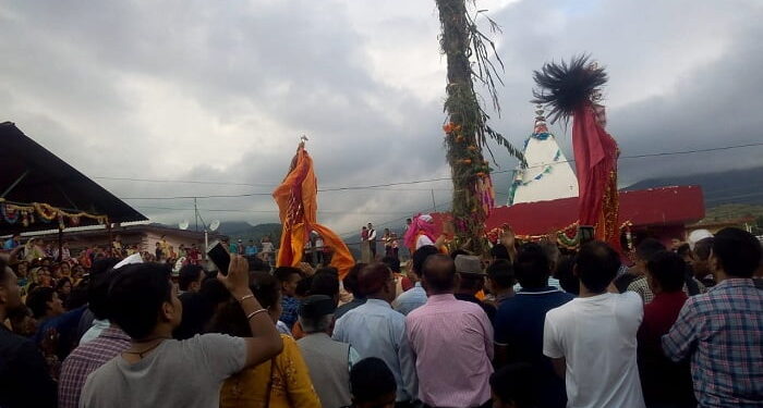 वर्षों से हर साल नंदा अष्टमी को मनाया जाने वाला पाती मेले का भव्य आयोजन के साथ समापन हो गया है। स्थानीय लोगों द्वारा चीड़ का लगभग 50 फीट लंबा स्तंभ पर कुंज, ककड़ी, अनाज की बालियां, पुष्प, मकई स्थानीय फल आदि को लपेट कर एक धर्म स्तंभ खड़ा कर उस पर नंदा देवी के पश्वा द्वारा आरोहण कर न्ंदा देवी द्वारा अपने ससुराल कैलाश पर्वत पर जाने का सांकेतिक मंचन कर मेले का समापन किया गया।