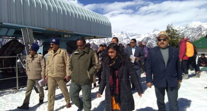 02– गेम्स से पूर्व औली मे स्थलीय निरीक्षण करते आयुक्त बीवीआरसी पुरूषोत्तम।