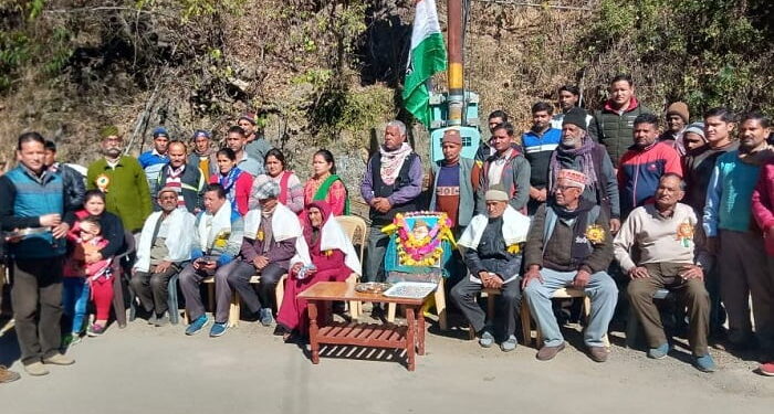 पूर्व राज्य मंत्री सुरेश कुमार बिष्ट के नेतृत्व में क्षेत्र के 7 स्वतंत्रता संग्राम सैनानियों के परिजनों ने मैखोली गांव के स्व0 जय सिंह बिष्ट की धर्म पत्नी गौरी देवी, स्व0 प्रताप सिंह कुंवर के पौत्र बलवंत कुंवर, कुणीखेत के स्व0 भवान सिंह बिष्ट के पुत्र बलवीर बिष्ट, खिनसर के स्व0 कलम सिंह भंडारी के पुत्र रणजीत भंडारी और स्व0 दरवान सिंह के भतीजे विक्रम भंडारी, थाला गांव के स्व0 नारायण सिंह बिष्ट के पुत्र त्रिलोक बिष्ट, थाला के ही स्व0 धनसिंह की पौत्री को शाँल ओढ़ा कर सम्मानित किया।