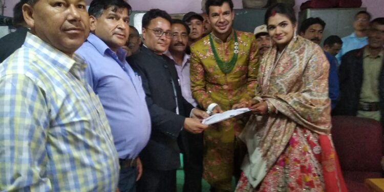 जोशीमठ। औली मे विवाह समारोह संपन्न होने के तुरंत बाद गुप्ता बंधुओ ने तहसील मुख्यालय जोशीमठ पंहुचकर वैवाहिक पंजीकरण कराया । सब रजिस्ट्रार/ तहसीलदार चंद्रशेखर बशिष्ठ ने नव दंपत्ति को प्रमाण विवाह प्रमाण पत्र दिए।