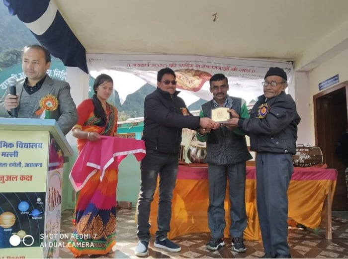 राउप्रावि के धनश्याम ढौंडियाल, नंंदलाल यादव, जयमल रावत, सुनीता दवी को सम्मानित किया गया। गांव के पहले उच्च शिक्षा प्राप्त जमन सिंह बिष्ट, गांव के प्रथम एम एस सी एवं जे आर एफ मुकेश बिष्ट, गांव के प्रथम बी टेक अरविंद बिष्ट, खेल एवं शिक्षा में विशिष्ट स्थान रखने वाले भरत सिंह राज्य स्तरीय मैराथन धावक, शान्ता देवी राज्य स्तरीय 200 मीटर दौड़ चैम्पियन, राष्ट्रीय स्तर पर फुटबाँल खिलाड़ी योगिता बिष्ट, चित्रकला में राज्यपाल से सम्मानित पूरन, प्रथम बार गांव से नवोदय विद्यालय में प्रवेश पाने वाले कुंदन, निशा, बबीता तथा राज्य निर्माण आंदोलनकारी बसंती देवी, स्व0धनसिंह, गांव के सबसे वयोवृद्ध श्याम सिंह आदि को सम्मानित किया गया।