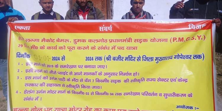 जोशीमठ। सैजी लग्गा मैकोट वेमरु स्यूंण डुमक कलगोठ मोटर मार्ग के कार्य शुरू करने के लिए आंदोलन तेज होने लगा डुमक गांव के युवा निकले पदयात्रा पर आज पहुंचेंगे उर्गम घाटी के वांसा गांव जोशीमठ चमोली जोशीमठ प्रखंड का दूरस्त गांव डुमक जहां आज पहुंचने के लिए 24 किलोमीटर से अधिक पद यात्रा करके पहुंच जाता है जिला मुख्यालय से कठिन चढ़ाई का रास्ता तय कर इस गांव में पहुंचा जाता है और गांव पहुंचने के बाद सुकून महसूस तो होता है किंतु प्रकृति का सुंदर आध्यात्मिक और सांस्कृतिक रूप से रचा बसा गांव डुमक है यहां से रुद्रनाथ शरट मार्ग से मात्र 7 किलोमीटर ही है यहां वजीर नंदा देवी का प्राचीन मंदिर है चारों ओर से घने जंगल के बीच में डुमक गांव वसा है यहां की जनसंख्या 350 की लगभग है गांव में नगदी फसल चौलाई राजमा होती है यहां से दर्जन ऑन ट्रैक रूट के मार्ग स्थित है यदि वचिंत है तो मात्र मोटर मार्ग से वंचित है वैसे तो ग्रामीणों ने शिक्षा के लिए भी एक बड़ा संघर्ष किया और जनता हाई स्कूल खोल करके यहां के बच्चों को शिक्षा प्रदान की किंतु मोटर मार्ग वर्ष 2007-8 में प्रधानमंत्री ग्राम सड़क योजना के तहत प्रथम चरण में स्वीकृत हो चुकी थी जिसे सैजी लग्गा मैकोट वेमरु स्यूंण डुमक कलगोठ मोटर मार्ग के नाम से जाना जाता है यह सड़क 29 किलोमीटर लंबी बनी थी किंतु आज तक सड़क का काम पूरा नहीं हो पाया यह सड़क एक दूरदर्शिता के रुप में स्वीकृत कराई गई थी कि जोशीमठ विकासखंड और दशोली विकासखंड के 20 से अधिक ग्राम सभाओं को इसका लाभ मिलेगा और अधिकांश ग्राम सभाओं को इसका लाभ मिला किंतु प्रधानमंत्री ग्राम सड़क योजना की कार्यदायी संस्था लोक निर्माण विभाग (pmgsy) पोखरी के कारण यह सड़क नहीं बन पाई एक तरफ जहां प्रधानमंत्री सड़क योजना के अधिकारी लोग कह रहे हैं कि हम सड़क को सही ढंग से निर्माण के लिए समरेखण बदल रहे हैं वही डुमक के ग्रामीण अब आर पार की लड़ाई के लिए तैयार है आज साल के पहले दिन वहां के नौजवान सड़क की मांग को लेकर जगह-जगह से पदयात्रा के लिए चल पड़े हैं आज ग्रामीणों ने डुमक गांव में एक रैली करके पद यात्रा का प्रस्थान किया और सरकार को कड़ी चेतावनी दी की जब तक हमारी मांग नहीं मानी जाएगी हम तब तक आंदोलन करेंगे सरकार से मांग कर रहे हैं कि शीघ्र सड़क पुराने ही समरेखण पर निर्मित करें और नहीं तो वोट भविष्य सरकार से लेकर तमाम तरह के हथकंडे आंदोलन में किए जाएंगे पूर्व प्रधान डुमक प्रेम सिंह सनवाल ने कहा कि विभागीय लोग जानबूझकर के हमारे गांव को मोटर मार्ग से वंचित कर रहे हैं यह एक सोचीसमझी चाल है और हम इसे होने नहीं देंगे उन्होंने कहा कि दो सप्ताह तक सघन रूप से पदयात्रा के माध्यम से लोगों का समर्थन मांगा जाएगा और आंदोलन को तेज किया जाएगा। इस अवसर पर ग्रामी