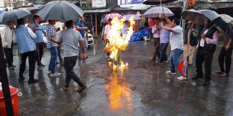 थराली। मुख्यमंत्री के नाम से देवाल के ब्लाक प्रमुख दर्शन दानू के द्वारा कथित रूप से अधिकारियों से अवैध वसूली किए जाने के विरोध में विकासखंड देवाल के कांग्रेसियों ने भारी बारिश के बीच जुलूस निकाल कर प्रदर्शन करते हुए मुख्यमंत्री का पुतला फूंका। इसके साथ ही देवाल के खंड विकास अधिकारी के माध्यम से राज्यपाल को एक ज्ञापन सौंपा जिसमें भ्रष्टाचार में लिप्त सरकार को हटाने एवं इसमें लिप्त लोगों पर कार्यवाही करने की मांग की हैं।