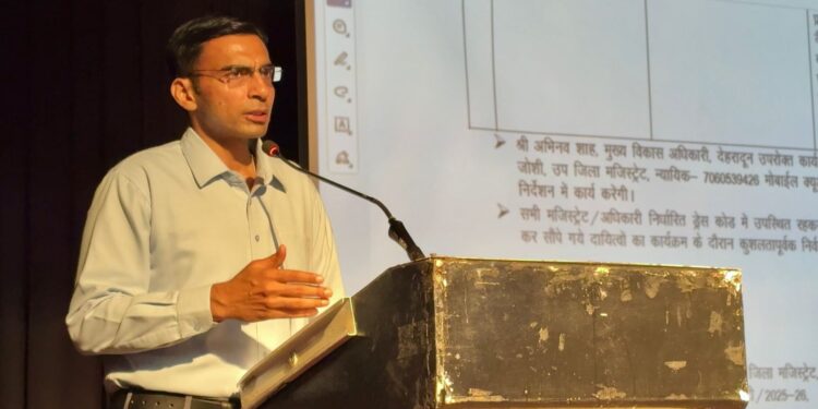 देहरादून। राज्य स्थापना दिवस रजत जयंती वर्ष के मुख्य कार्यक्रम एवं माननीय प्रधानमंत्री जी के आगमन के दृष्टिगत जिलाधिकारी सविन बंसल ने आईआरडीटी ऑडिटोरियम में वन अनुसंधान संस्थान (एफआरआई) परिसर में आयोजित होने वाले कार्यक्रम की व्यवस्थाओं तैनात मजिस्ट्रेट, सैक्टर मजिस्ट्रेट, नोडल अधिकारियों की ब्रीफिंग करते हुए तैनात अधिकारियों को उनके दायित्व समझाए।
