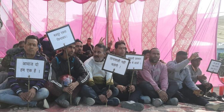 डोईवाला, (प्रियांशु सक्सेना)। लालतप्पड़ औद्योगिक क्षेत्र स्थित यूरेका फोर्ब्स कंपनी के खिलाफ श्रमिकों ने अनिश्चितकालीन धरना-प्रदर्शन शुरू कर दिया है। श्रमिकों ने फैक्ट्री प्रबंधन पर उत्पीड़न और श्रम कानूनों के उल्लंघन के गंभीर आरोप लगाए हैं। बृहस्पतिवार को काफी संख्या में श्रमिक धरना स्थल पर डटे रहे और कंपनी प्रबंधन के खिलाफ जोरदार नारेबाजी की। कर्मचारियों का कहना है कि यूरेका फोर्ब्स कंपनी द्वारा संविदा श्रमिकों का लंबे समय से शोषण किया जा रहा है। श्रमिक नियमों की अनदेखी करते हुए वर्षों से कार्यरत स्थानीय कर्मचारियों की सेवाएं मनमाने ढंग से समाप्त कर दी गई हैं। श्रमिक नेता पवन नेगी, विमल सिंह एवं ऋषिपाल रावत ने बताया कि श्रमिकों के हितों से जुड़े लाभों में भारी अनियमितताएं की गई हैं। कंपनी प्रबंधन की हठधर्मिता और निरंकुश रवैये के विरोध में यह अनिश्चितकालीन धरना शुरू किया गया है। उन्होंने स्पष्ट किया कि जब तक श्रमिकों की मांगें पूरी नहीं होतीं, तब तक आंदोलन जारी रहेगा। नगर पालिका के सभासद एवं श्रमिक नेता संदीप नेगी ने बताया कि 10 से 15 वर्षों तक संविदा के माध्यम से कार्य करने वाले श्रमिकों से कुशल श्रेणी का कार्य लिया जा रहा है, लेकिन उन्हें अकुशल श्रेणी का वेतन दिया जा रहा है। उन्होंने आरोप लगाया कि कंपनी प्रबंधन द्वारा लगातार उत्पीड़न और अनियमितताओं के बावजूद श्रम विभाग ने अब तक कोई वैधानिक कार्रवाई नहीं की है। गौरतलब है कि बीते बुधवार को कर्मचारियों ने डोईवाला तहसील मुख्यालय पर प्रदर्शन कर उप जिलाधिकारी के माध्यम से प्रदेश के मुख्यमंत्री के नाम ज्ञापन प्रेषित किया था। इसके बाद से कर्मचारी कंपनी के समीप अनिश्चितकालीन धरने पर बैठे हुए हैं। धरना प्रदर्शन में मुकेश शर्मा, बंसीलाल थपलियाल, प्रकाश थापा, मोहित नेगी, चंद्र किशोर, मुकेश रौतेला, प्रदीप रावत, अमित सिंह, अनिल चंद्र, मुकेश नौटियाल आदि शामिल रहे।