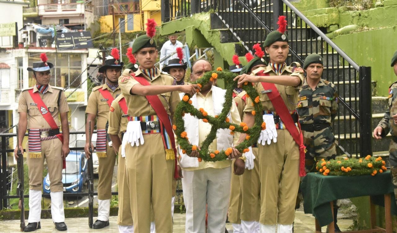 कमल बिष्ट/पौड़ी। जनपद में आज कारगिल विजय दिवस को शौर्य दिवस में रूप मनाया गया। कारगिल विजय दिवस की 24वीं वर्षगांठ पर जनपद मुख्यालय में शहीद स्मारक एजेंसी चौक पौड़ी में जिला पंचायत अध्यक्ष शांति देवी, स्थानीय विधायक राजकुमार पोरी, नगर पालिका अध्यक्ष पौड़ी यशपाल बेनाम, जिलाधिकारी गढ़वाल डॉ. आशीष चौहान , वरिष्ठ पुलिस अधीक्षक स्वेता चौबे सहित अन्य अधिकारियों व पूर्व सैनिकों ने कारगिल युद्ध के शहीद वीर जवानों को पुष्प चक्र व श्रद्धासुमन अर्पित कर श्रद्धांजलि दी गयी। कार्यक्रम से पूर्व छात्र-छात्राओं द्वारा एजेंसी चौक से कलेक्ट्रेट तक प्रभातफैरी निकाली गई।