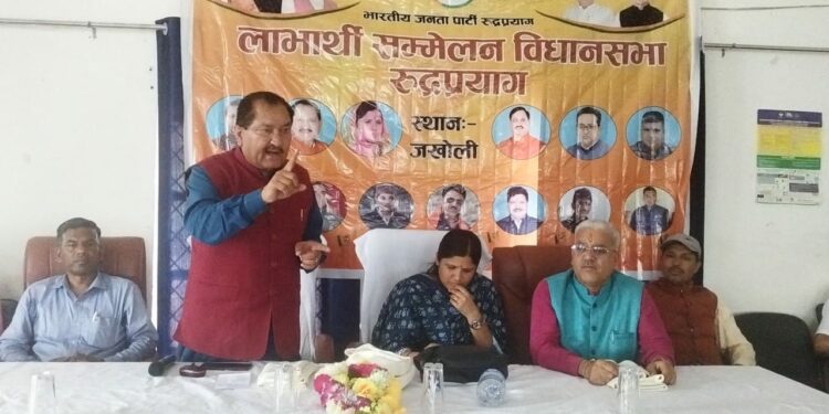 जखोली – जनपद रुद्रप्रयाग के विकास खण्ड जखोली के सभागार मे केंद्र मे भाजपा सरकार के 9 वर्ष पूर्ण होने पर पार्टी द्वारा चलाये जा रहे महाजनसम्पर्क अभियान के तहत लाभार्थी सम्मेलन का आयोजन किया गया,इस दौरान विधायक भरत सिंह चौधरी ने सरकार की जनकल्याणकारी योजनाओं की जानकारी देते हुए कहा कि प्रधानमंत्री आवास योजना,उज्ज्वला योजना,किसान सम्मान निधि,अटल आयुष्मान योजना,अटल खाद्यान्न योजना,सहित सरकार की विभिन्न योजनाओं का लाभ जनता को पहुँच रहा है साथ ही उन्होंने लाभार्थियों से संवाद भी किया।