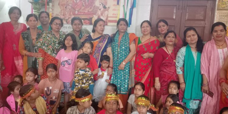 कोटद्वार। विधानसभा के अन्तर्गत नगर मण्डल में श्रीमती महेश्वरी बिष्ट की अध्यक्षता में कन्या पूजन व शक्ति पूजन का कार्यक्रम मालगोदाम रोड़ के वार्ड न० 4, दुर्गा मन्दिर में किया गया। कार्यक्रम में कीर्तन मण्डलियों के द्वारा, भजन कीर्तन किया गया। जिसमें सांगठनिक जिला कोटद्वार महिला मोर्चा अध्यक्ष शशिबाला केष्टवाल भी सम्मिलित हुई। भजन संध्या के साथ कन्या पूजन भी किया गया। जिसमे नाथ मण्डली कन्या पूजन अध्यक्ष संगीता भट्ट, वार्ड न0 4 की पार्षद शान्ति प्रजापति, लक्ष्मी रावत, निशा जुयाल, उर्वशी अग्रवाल, सीमा रावत, आशा ध्यानी सहित कई बहने सम्मिलित हुई।