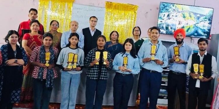 डोईवाला, (प्रियांशु सक्सेना)। शहीद दुर्गा मल्ल पीजी कॉलेज डोईवाला में राजनीति विज्ञान विभागीय परिषद की ओर से विभिन्न प्रतियोगितात्मक कार्यक्रम आयोजित किए गए, जिनमें छात्र-छात्राओं ने उत्साहपूर्वक प्रतिभाग किया। शुक्रवार को आयोजित कार्यक्रम में तत्काल भाषण, निबंध, पोस्टर, क्विज तथा प्रस्तावना वाचन प्रतियोगिताएं कराई गईं। निबंध प्रतियोगिता में पूनम महतो ने प्रथम, कुमारी रीना ने द्वितीय और कुमारी पलक ने तृतीय स्थान हासिल किया। जबकि पोस्टर प्रतियोगिता में प्रिंस शर्मा प्रथम, पूनम महतो द्वितीय तथा पलक तृतीय रहीं, जबकि अमित कुमार को सांत्वना पुरस्कार मिला। प्रस्तावना वाचन प्रतियोगिता में परमिंद्र सिंह प्रथम, अमित कुमार द्वितीय और अंकिता नेगी तृतीय स्थान पर रहीं। वहीं, तत्काल भाषण प्रतियोगिता में अरुण तिवारी प्रथम, अमित कुमार द्वितीय और सान्वी मलिक तृतीय स्थान पर रहीं। इसके अलावा सामान्य ज्ञान प्रतियोगिता में बीए से कोमल व अंजली की टीम प्रथम, दीपक नौटियाल व वैष्णवी उनियाल की टीम द्वितीय तथा बीएससी से मोहम्मद समद व प्रांजल चौहान की टीम तृतीय स्थान पर रही। कार्यक्रम में विभागीय परिषद के अध्यक्ष परमिंद्र सिंह, उपाध्यक्ष अंशुल देवरानी, महासचिव सान्वी मलिक, सह-सचिव मुकेश कुमार, कोषाध्यक्ष प्रिंस शर्मा एवं सांस्कृतिक सचिव अंकित नेगी को भी सम्मानित किया गया। साथ ही, सभी प्रतिभागियों को भारतीय ज्ञान परंपरा परीक्षा के प्रमाण पत्र प्रदान किए गए। कार्यक्रम में डॉ. अंजली वर्मा ने विद्यार्थी जीवन के महत्व पर प्रकाश डाला, जबकि डॉ. पल्लवी मिश्रा ने छात्र जीवन में सकारात्मक सोच की आवश्यकता बताई। डॉ. वंदना गौड़ ने समर्थ पोर्टल एवं स्टूडेंट रेगुलेट्री प्रणाली की जानकारी दी। इस मौके पर प्राचार्य डॉ. डीपी भट्ट, विभागाध्यक्ष डॉ राखी पंचोला, डॉ शशि बाला, प्रो नैथानी, अमित नेगी, डॉ कामना लोहानी, पुष्पा नेगी, छात्रसंघ अध्यक्ष अमित कुमार, अर्जुन सजवान आदि रहे।