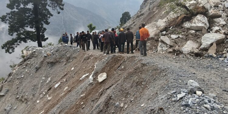 थराली/देवाल। विकास खंड देवाल के अंतर्गत घेस घाटी में गुरुवार की देर सांय हुईं भारी ओलावृष्टि से गेहू की फसलों के साथ ही फलों के पौधों को भारी नुकसान पहुंचा है। इसके अलावा देवाल-कुनारबेंड-घेस मोटर सड़क भी घेस के पास जंनगोल नामक स्थान पर मलुवा आ जाने के यातायात के लिए अवरूद्ध हो गई हैं। गुरुवार की सांय घेस घाटी के लिए घेस,हिमनी,बलाड़ एवं पिनाऊ गांव में भारी ओलावृष्टि हुई जिस कारण खेतों में खड़ी गेहूं की फसलों को भारी नुकसान हुआ हैं, इसके अलावा कटकी सहित अन्य जड़ी-बूटियों के पौधों के साथ ही फलों को भी नुकसान हुआ हैं।जिस कारण किसानों में मायूसी छा गई हैं। ओलावृष्टि के साथ ही इस क्षेत्र में हुई भारी बारिश के चलते कुनारबेंड-घेस मोटर सड़क स्लाइड जोन जंनगोल नामक स्थान पर मलुवा आ जाने के कारण यातायात के लिए बंद हो गई है, ग्रामीण इस सड़क को यातायात के लिए खोलने में जुटे हुए हैं।