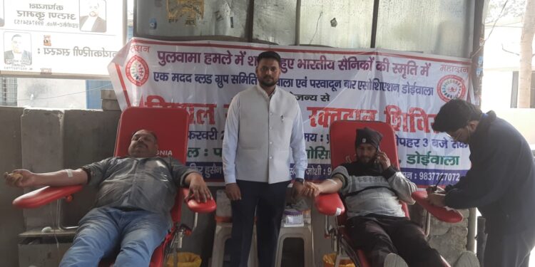 डोईवाला, (प्रियांशु सक्सेना)। एक मदद ब्लड ग्रुप समिति एवं परवादून बार एसोसिएशन, डोईवाला के संयुक्त तत्वावधान में बार एसोसिएशन प्रांगण में पुलवामा हमले में शहीद हुए वीर सैनिकों की स्मृति में रक्तदान शिविर लगाया गया। शिविर में कुल 26 यूनिट रक्त एकत्रित किया गया। जिसे हिमालयन ब्लड बैंक भेजा गया। समिति के अध्यक्ष साकिर हुसैन एवं परवादून बार एसोसिएशन के सचिव मनोहर सिंह सैनी ने कहा कि प्रत्येक स्वस्थ व्यक्ति को जीवन में कम से कम एक बार अवश्य रक्तदान करना चाहिए। उन्होंने बताया कि युवाओं को रक्तदान के प्रति जागरूक और प्रेरित करने के उद्देश्य से इस शिविर का आयोजन किया गया है। उन्होंने आमजन से अपील की कि मानवता की सेवा हेतु अधिक से अधिक लोग आगे आकर रक्तदान करें। रक्तदाताओं को ब्लड बैंक की ओर से प्रमाण पत्र भी प्रदान किए गए। शिविर में संदीप जोशी, साहिल अली, मोहम्मद आसिफ, फरहान मलिक, मनीष सिद्धू, मनीष कुमार, अरुण टम्टा, ईश्वर सैनी आदि उपस्थित रहे।