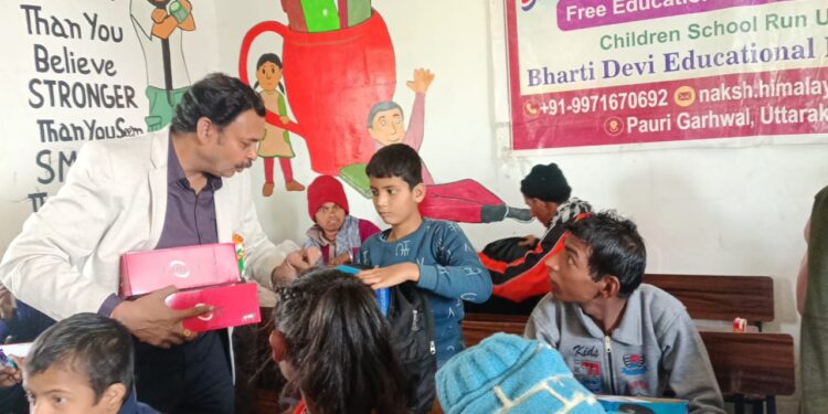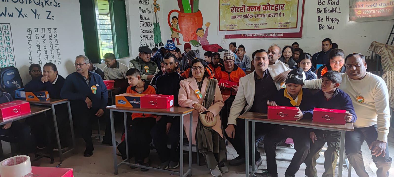 कोटद्वार। रोटरी क्लब कोटद्वार के तत्वावधान में भारती देवी एजुकेशनल फाउण्डेशन के दिव्यांग स्कूल में 52 बच्चों को जूते वितरित किए गए। झण्डचौड़ स्थित भारती देवी एजुकेशनल फाउंडेशन के कार्यालय में आयोजित उक्त कार्यक्रम का शुभारंभ रोटरी अध्यक्ष ऋषि ऐरन व संस्थान के संस्थापक डॉ० कमलेश कुमार ने किया।