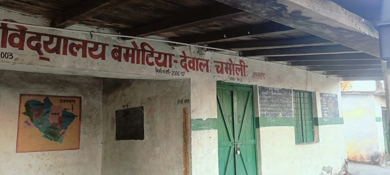 जिस वजह से छात्र, छात्राओं एवं अभिभावकों को शिक्षा से अधिक अपनी जान की फिक्र बनी रहती हैं।क्योंकि भवन काफी जर्जर स्थिति में पहुंच चुका हैं। बेराधार ग्राम पंचायत के अंतर्गत अनुसूचित तोक बामोटिया में 2003 में प्राथमिक विद्यालय का संचालन शुरू हो गया था।वही राजकीय प्राथमिक विद्यालय में छात्र, छात्राओं की संख्या को देखते हुए शिक्षा विभाग ने वर्ष 2012-13 में यहां पर राजकीय जूनियर हाई स्कूल खोलने की स्वीकृति देते हुए बकायदा 6 से 8 तक की कक्षाओं का संचालन भी शुरू कर दिया था। वैकल्पिक तौर पर राजकीय प्राथमिक विद्यालय के भवन से जूनियर की कक्षाओं का संचालन शुरू किया और आज भी इसी भवन से कक्षाओं का संचालन हो रहा हैं।मात्र दो कक्षा-कक्षों में 1 से 8 तक की कक्षाओं का कैसे संचालन होता होगा स्वयंम समझा जा सकता हैं। गरीब ग्रामीण लंबे समय से यहां पर जूनियर हाईस्कूल के भवन का निर्माण करने की शासन , प्रशासन से मांग करते आ रहे हैं किंतु आज तक भी भवन निर्माण नही हो पाया हैं। बमोटिमा में प्राइमरी के कक्षा-कक्षों में ही 1 से 8 तक की कक्षाओं का संचालन हो रहा है, वही इसी भवन में आंगनबाड़ी केंद्र का भी संचालन किया जा रहा है ऐसे में स्थिति और भी असामान्य होकर रह गई है। बमोटिया के ग्रामीण रमेश राम बताते हैं कि पिछले कई वर्षों से जनप्रतिनिधियों एवं शिक्षा विभाग के उच्चाधिकारियों से भवन निर्माण के लिए ग्रामीणों के द्वारा लगातार पत्राचार किया जा रहा है किंतु आज तक भी भवन का निर्माण नही पाया हैं, इसके पीछे भवन निर्माण के लिए वर्षों बाद भी वन भूमि का शिक्षा विभाग के नाम हस्तांतरण नही होना हैं। वन विभाग भूमि हस्तांतरण के लिए लगातार आपत्तियों पर आपत्तियां लगाते आ रहा है, जिस का खामियाजा नौनिहालों को भुगतना पड़ रहा हैं। समुद्र तल से करीब 22 मीटर की ऊंचाई पर स्थित बमोटीया में गर्मियों एवं जाड़ों के सामान्य मौसम में तों कक्षाओं का संचालन खुलें आसमान तले किया जाता हैं, किंतु बरसात एवं जाड़ों में बर्फबारी व ठंड अधिक होने के कारण छात्रों को प्राइमरी के कमरों में ठूस कर बिठा दिया जाता हैं। ऐसे में ही अध्ययन अध्यापन का कार्य संचालित किया जाता हैं। देवाल के खंड शिक्षा योगेंद्र सेमवाल ने बताया कि प्राथमिक व जूनियर हाईस्कूल प्राइमरी के भवन से ही संचालित हो रहा हैं, विद्यालय का अन्य भवन जर्जर स्थिति में है, स्कूली छात्र कक्षा-कक्ष के अलावा बरामदे में पठन-पाठन का काम करते हैं। भवन के नव निर्माण एवं मरम्मत के लिए लगातार पत्राचार किया जा रहा है। धनराशि की स्वीकृति पर भवन की मरम्मत व सुधारीकरण किया जाएगा। बताया कि वर्तमान में प्राथमिक वर्ग में 19 एवं जूनियर हाईस्कूल में 18 छात्र छात्राएं अध्ययनरत हैं।
