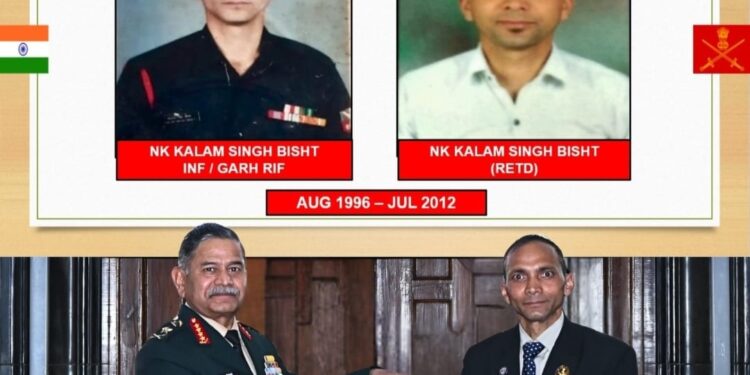 थराली। विकास खंड देवाल के अंतर्गत मन्दोली निवासी पूर्व सैनिक कलम सिंह बिष्ट को सेनाध्यक्ष (एसओएएस) जनरल उपेंद्र द्विवेदी ने सेना मुख्यालय दिल्ली में उनके द्वारा सेवानिवृत्त के बाद किए गए असाधारण जीवन एवं उनकी हालिया उपलब्धि पर उन्हें सम्मानित किया ।