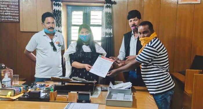 फोटो- नीती घाटी का सडक संपर्क शुरू करने की मांग को लेकर ज्ञापन देते हुए ।