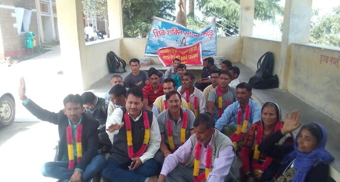 फाइल फोटो– संडक की मांग को लेकर तहसील मुख्यालय पर धरना देते ग्रामीण।