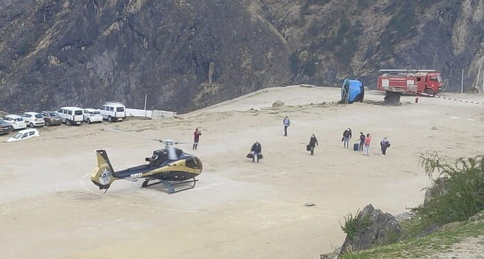 जोशीमठ। इटली के इंजीनियरों को लेने पहुंचे हेलीकाफ्टर। रविग्राम हेलीपैड से तीन शिफ्ट मे करीब 20 लोगों को गंतब्य तक ले जाया गया।