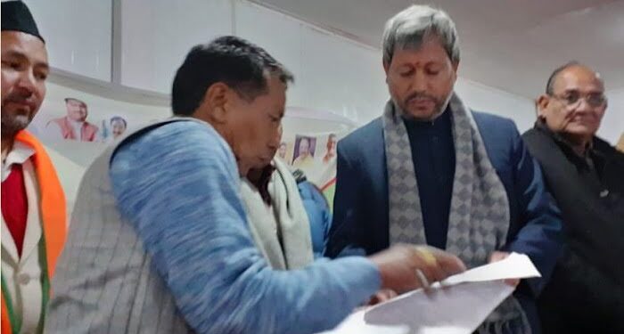 फोटो- गढवाल सांसद तीरथ रावत को ज्ञापन देते क्षेत्र प्रमुख हरीश परमार ।