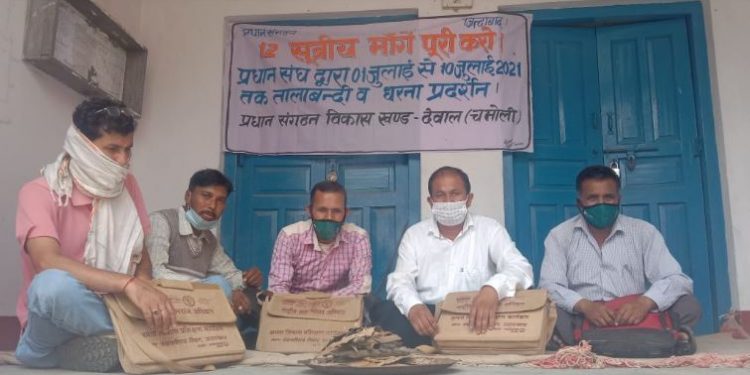 प्रधान संगठन अपनी 12 सूत्रीय मांगों को लेकर आंदोलित हैं। बुधवार सातवें दिन भी प्रदेश भर में उनका आंदोलन जारी रहा। आज प्रधान संघ देवाल के अध्यक्ष राजेन्द्र सिंह बिष्ट ने नेतृत्व में देवाल ब्लाक के ग्राम प्रधान ने अपनी मांगों को मनवाने के लिए राज्य सरकार की शुद्धि बुद्वी के लिए ब्लाक कार्यालय में एक यज्ञ आयोजित कर अपनी मांगों के समर्थन में नारेबाजी की।इस मौके पर प्रधान मनोज कुमार,दिलवर सिंह रावत,खीमराम,लीला राम,अंशी देवी, मनोज मिश्रा आदि मौजूद थे।