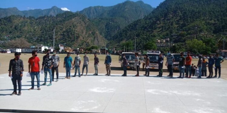 फोटो..प्रवासियों का गौचर पहुंचने का क्रम जारी।