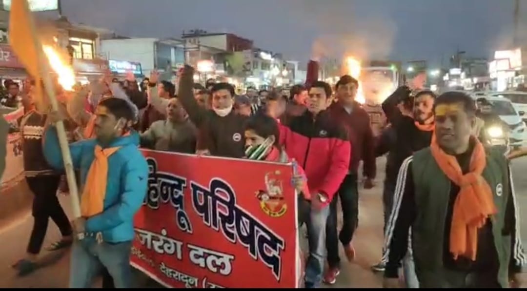 डोईवाला। कर्नाटक में बजरंग दल के कार्यकर्ता हर्षा की हत्या से नाराज डोईवाला के बजरंग दल, विश्व हिंदू परिषद और भाजपा कार्यकर्ताओं ने बुधवार शाम को हिमालयन चौक से भानियावाला तक जुलूस निकालकर अपना रोष प्रकट किया और भारत सरकार से आरोपियों को अति शीघ्र गिरफ्तारी कर उन्हें फांसी की सजा दे देने की मांग की।