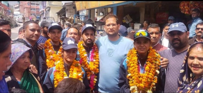 जोशीमठ। राष्ट्रीय स्नो सुइंग चैम्पियनशिप में आठ मैडल के साथ ओवरऑल चैम्पियनशिप जीतने के बाद जोशीमठ पहुंची उत्तराखंड की टीम का भव्य स्वागत हुआ।