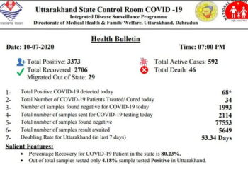 3373 पहुंचा कोरोना संक्रमितों का आंकड़ा, रुद्रप्रयाग, बागेश्वर में एक्टिव मरीज शून्य