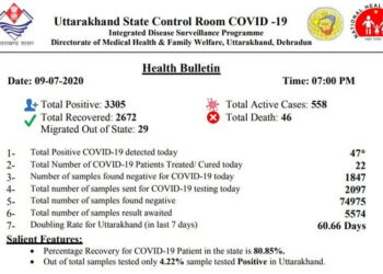 3305 पहुंचा उत्तराखंड में कोरोना संक्रमितों का आंकड़ा