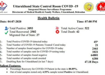 देहरादून। उत्तराखंड में कोरोना संक्रमितों का आंकड़ा 3093 पहुंच गया है। हालांकि एक्टिव संक्रमित 522 हैं। 2502 लोग इलाज कराकर...