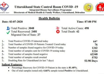 देहरादून। उत्तराखंड राज्य में कोरोना संक्रमितों का आंकड़ा तीन हजार के पार पहुंच गया है। राज्य में 3048 संक्रमित पहुंच...