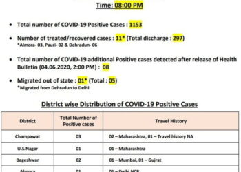 देहरादून। रात्रि आठ बजे के हेल्थ बुलेटिन के अनुसार दोपहर दो बजे से आठ बजे बीच राज्य में आठ कोरोना...