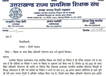 राजकीय प्राथमिक शिक्षक संगठन टिहरी गढ़वाल ने नरेंद्रनगर ब्लॉक में कार्यरत अध्यापक जितेंद्र सिंह के खिलाफ आपदा प्रबंधन एक्ट के...