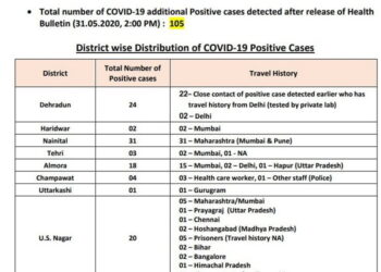 देहरादून। राज्य नियंत्रण कक्ष कोविड-19 द्वारा रात्रि आठ बजे के हेल्थ बुलेटिन में एक और कोरोना विस्फोट हुआ है। दोपहर...