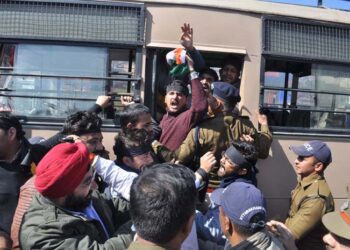 कांग्रेस भवन से काले झंडे लेकर अमित शाह के कार्यक्रम की ओर बढ़ रहे कांग्रेसी गिरफ्तार