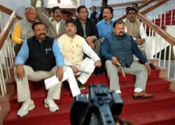 फोटो-सदन से वाॅकआउट करने के बाद बाहर सीढ़ियों पर धरना देते कांग्रेस विधायक। देहरादून। उत्तराखंड विधानसभा के बजट सत्र के...