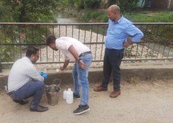 सुसवा नदी के जल की गुणवत्ता जांचने के लिए सीपीसी बोर्ड की टीम ने लिए नमूने