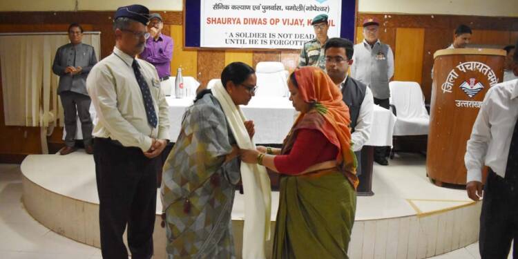 शौर्य दिवस पर जिला पंचायत में आयोजित कार्यक्रम में कारगिल शहीद नायक दिलवर सिंह के भतीजे रोहित, शहीद राइफल मैन अमित नेगी के चाचाजी बलवंत सिंह, शहीद सिपाही हिम्मत सिंह के परिजन विक्रम सिंह, शहीद नायक आनंद सिंह के भाई खुशाल सिंह को अंग वस्त्र भेंट कर सम्मानित किया गया। इस अवसर पर श्रीलंका में लिबरेशन तमिल टाइगर के उग्रवादियों से लोहा लेते हुए शहीद राइफल मैन सुरेन्द्र सिंह की पत्नी शांति देवी, नायक आनंद सिंह की पत्नी कला देवी एवं शहीद सैनिक जगदीश प्रसाद पुरोहित पत्नी ऊषा देवी को भी सम्मानित किया गया।
