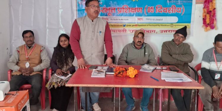 थराली। विकास खंड नारायणबगड़ के अंतर्गत हंसकोटी एवं हरमनी में 5 दिवसीय पंचायत प्रतिनिधियो का प्रशिक्षण कार्यक्रम का आयोजन किया गया।हसकोटी में नारायणबगड़ के ब्लॉक प्रमुख गणेश चंदोला ने एवं हरमनी में मलतूरा के ग्राम प्रधान सुरेंद्र सिंह रावत ने उद्घाटन किया।