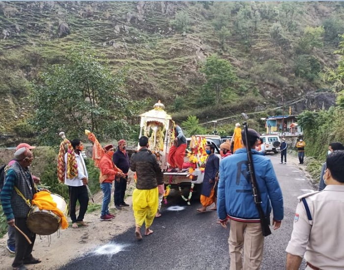 उखीमठ। बाबा केदारनाथ भगवान की पंचमुखी डोली आज श्री ओंकारेश्वर मंदिर उखीमठ से सादगीपूर्वक केदारनाथ धाम को प्रस्थान हुई।