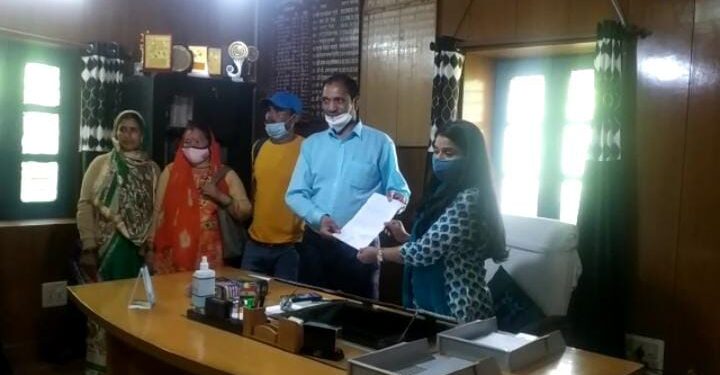 फोटो-अभिनव विद्यालयों को मर्ज किए जाने के खिलाफ एसडीएम के माध्यम से सीएम को ज्ञापन भेजते हुए।