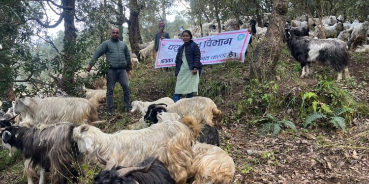 पौड़ी गढ़वाल। जनपद पौड़ी में घुमन्तु पशुपालकों के पशुओं के उपचार हेतु पशुपालन विभाग की ओर से माण्डाखाल (पौड़ी मुख्यालय से लगभग 10 किमी दूर) में पशु चिकित्सा शिविर आयोजित किया गया। शिविर में चिकित्सकों द्वारा भेड़‐बकरी पालन करने वाले घुमन्तु पशुपालकों के झुण्ड का निरीक्षण किया गया। टीम ने पशुओं के स्वास्थ्य परीक्षण के साथ डीवॉर्मर, मिनरल सप्लीमेंट, मैग्नीशियम सल्फेट तथा ऑक्सीटेट्रासाइक्लिन इंजेक्शन वितरित किए। पशुपालकों ने बताया कि हाल ही में हुई भारी वर्षा के बाद पशुओं में लगातार खांसी एवं वजन में कमी की समस्या देखी जा रही है। पशु चिकित्सकों ने कुल 30 पशुओं के मल नमूने एकत्र कर प्रयोगशाला जांच हेतु भेजे। वहीं शिविर में 400 भेड़ व बकरी, 06 घोड़े और 10 कुत्तों का टीकाकरण किया गया।