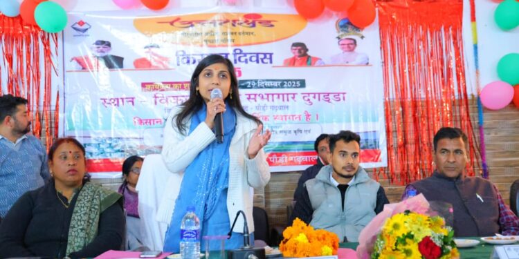 गढ़वाल। किसान दिवस कार्यक्रम का शुभारम्भ आज जनपद चमोली के विकास खण्ड कर्णप्रयाग से मुख्यमंत्री पुष्कर सिंह धामी एवं केंद्रीय कृषि एवं किसान कल्याण मंत्री शिवराज सिंह चौहान द्वारा किया गया। इसी क्रम में जनपद पौड़ी गढ़वाल के अंतर्गत सभी 15 विकासखंडों में किसान दिवस कार्यक्रम एवं किसान मेलों का आयोजन किया गया। जिलाधिकारी स्वाति एस. भदौरिया ने दुगड्डा ब्लॉक सभागार में आयोजित कार्यक्रम में स्टॉलों का निरीक्षण भी किया।