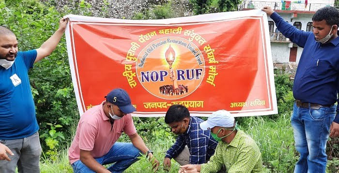 आज जनपद रुद्रप्रयाग के विभिन्न स्थानों पर जिला इकाई के सदस्यो द्वारा वृक्षा रोपण करके सरकार का ध्यान पुरानी पेंशन बहाली की ओर खींचने की नई मुहिम चलाई गई।