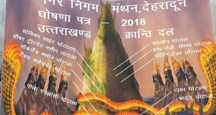 देहरादून। यूकेडी ने मंगलवार को निकाय चुनाव के लिए अपना घोषणा पत्र जारी कर दिया। यूकेडी ने अपने घोषणा पत्र में कांग्रेस-भाजपा को सूबे को डसकर भ्रष्टाचार की गर्त में फंेकने वाला दोमुंहा राजनीतिक सांप बताया। यूकेडी ने अपने घोषणा पत्र में सूबे के निगमों व निकायों को पूरी तरह से भ्रष्टाचार मुक्त करने का वायदा किया है।